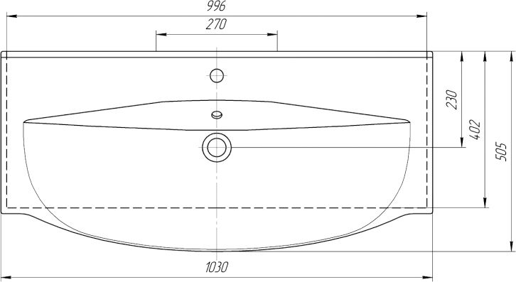Полукруглая форма раковины оптимальных размеров: шириной 103 см, глубиной 50.5 см, высотой 13 см, способствует комфорту использования и монтажа. Современный стиль, в котором выполнена раковина передается во всех элементах данной модели. Материалом, из которого произведена раковина является фаянс, данный материал отличается максимально гладкой поверхностью, и абсолютной гигиениченостью.