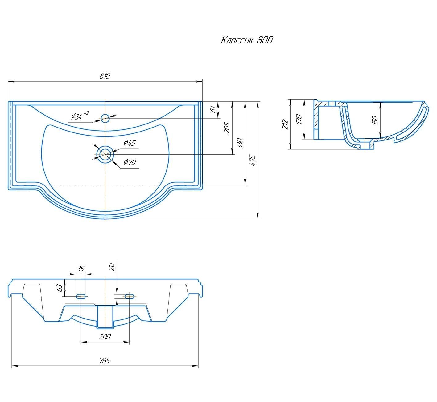 Необычный изящный дизайн раковины Kirovit КЛАССИК 80 гармонично впишется в любой интерьер ванной комнаты.