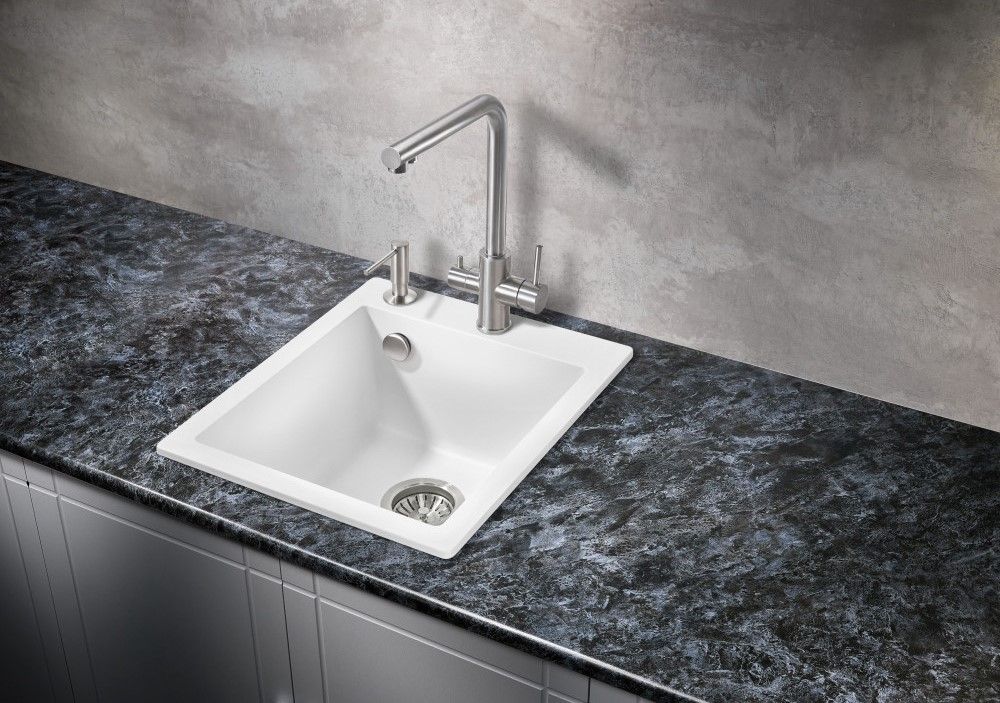 Кухонные мойки MILACIO — эталон стиля и качества даже для самых искушенных ценителей дизайнерской сантехники.Каменная врезная прямоугольная мойка для кухни MILACIO Murcia 42 Cuarzo (MC.77042), выполненная в белом матовом цвете, воплотила в себе лучшие особенности: безупречный вид, лаконичный дизайн, прочность конструкции и комфортное использование. Раковина изготовлена из высококлассного кварцевого композита — смеси частиц кварца и полиэфирных смол — красивого и современного материала, обладающего уникальной прочностью. Искусственный камень устойчив к любым воздействиям — царапинам, ударам, высоким и низким температурам (не боится кипятка и горячей посуды), бытовой химии, пищевым красителям, свету и загрязнению. Даже спустя годы изделие не потеряет цвет и форму и будет должным образом выполнять свои функции. Кухонная кварцевая мойка достаточно компактна, чтобы лучшим образом использовать пространство в небольшой комнате. Размер компенсируется глубокой чашей квадратной формы — в нее поместятся сразу несколько комплектов посуды. Благодаря правильной геометрии мойки капли не разбрызгиваются в стороны, а специальное водоотталкивающее покрытие не дает воде растекаться по поверхности, что сводит загрязнение к минимуму.При этом уход за раковиной достаточно прост: пятна легко убираются чистящими средствами — без подтеков и разводов.
