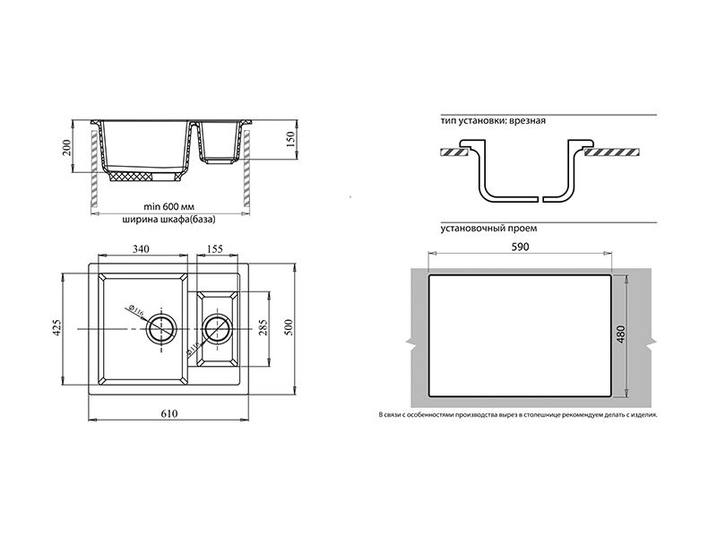 Установочный проем: 590х480 мм