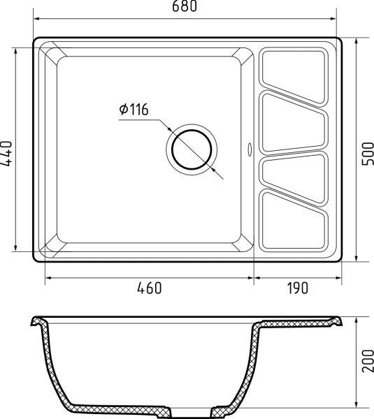 Мойка кухонная GranFest VERTEX VV-680L топаз