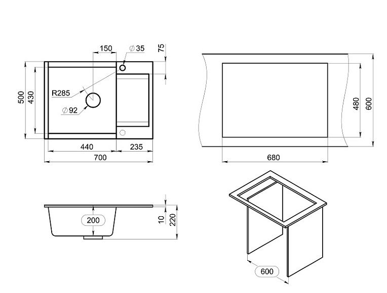 - Отверстия под смеситель:1