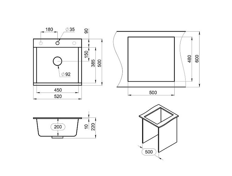 Сифон с отводом для бытовой техники, разделочная доска (ясень)