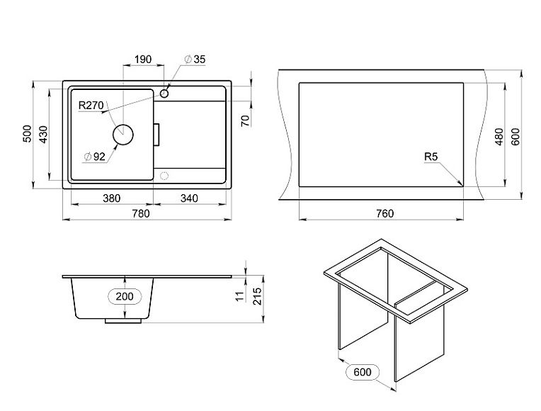 Мойка кухонная Granula 7804, ТУРМАЛИН