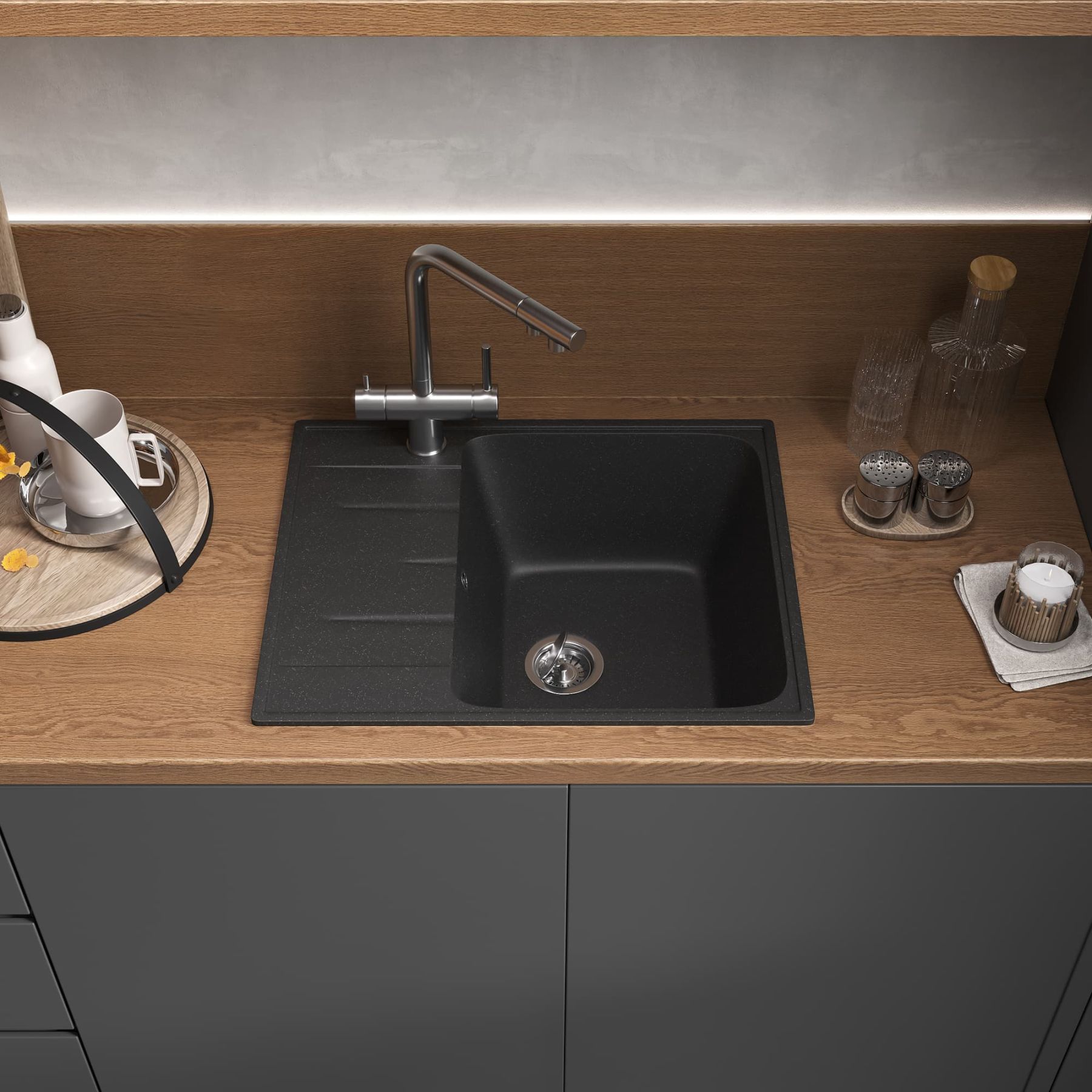 Мойка кухонная Reflexion Plato 57-CL RX1457СL уголь