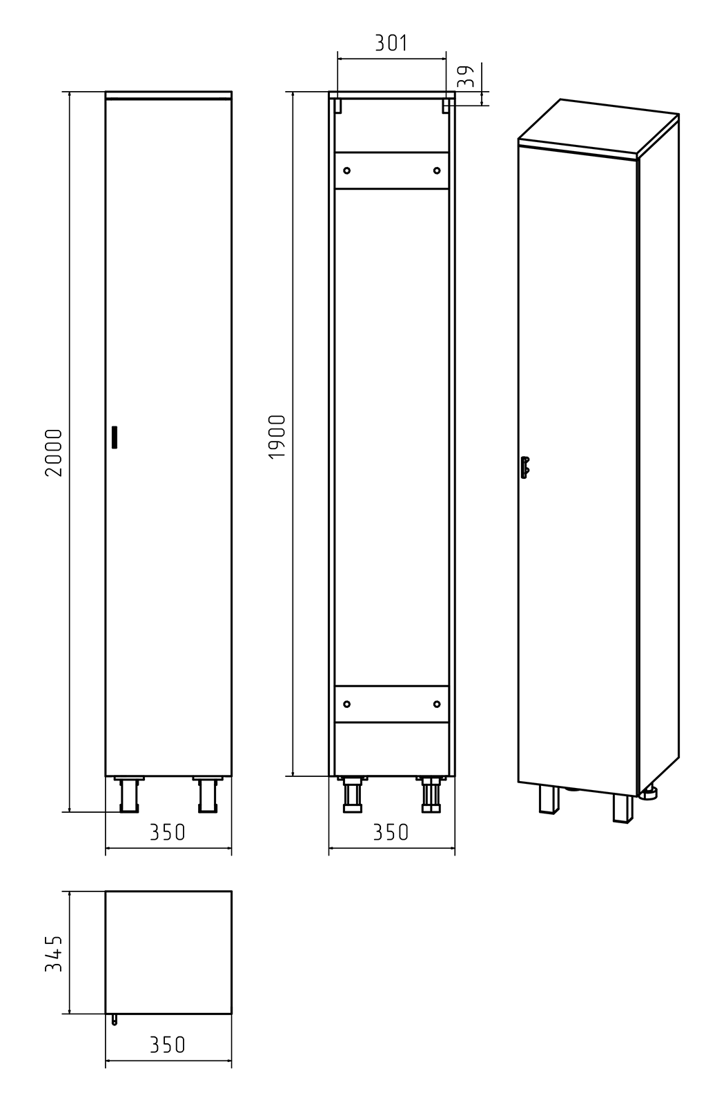 Напольный шкаф - пенал Misty Дива 35см правый белый