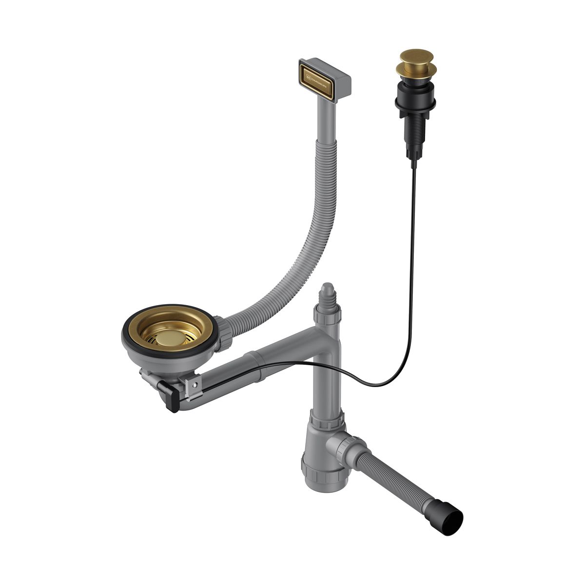 Арматура для одночашевых моек с прямоугольным переливом, декоративной решеткой и клапаном-автомат. Подходит для моек из серий TAKI, AKISAME, OMI, TADZAVA И KATA.