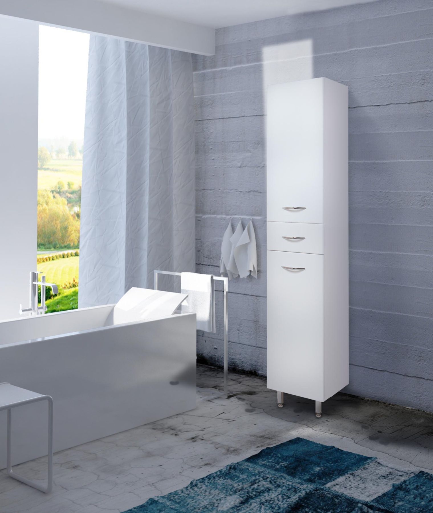 Напольный пенал для ванной комнаты Onika МОДЕРН 32, благодаря простому минималистичному дизайну и белому глянцевому фасаду, подойдет под любой интерьер ванной комнаты.