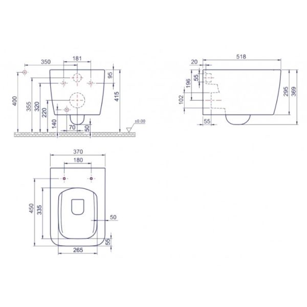- Укороченный унитаз:нет