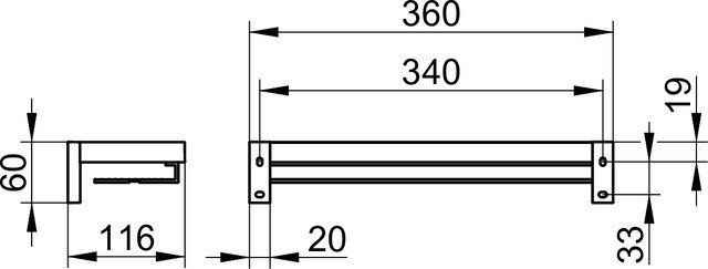 Полочка для душа 19158010000 Keuco Edition 90, размер 360 mm x 60 mm x 116 mm, цвет хром/алюминий.