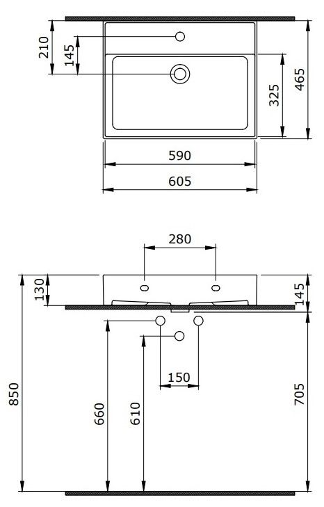 • Отверстия под смеситель: