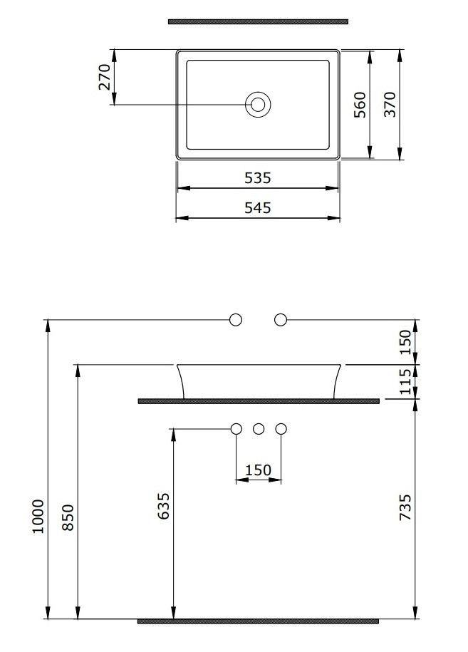 • Отверстия под смеситель: