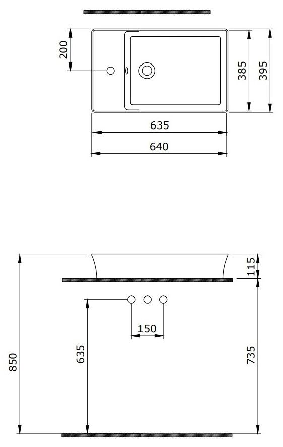 • Отверстия под смеситель: