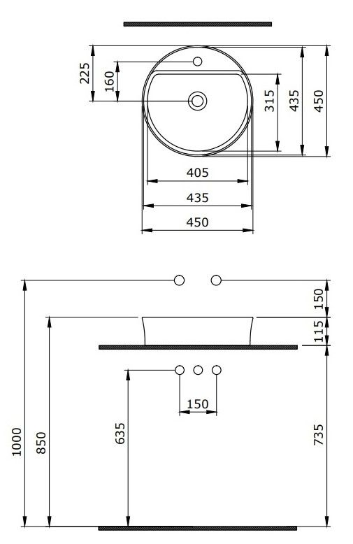 Накладная раковина из санфарфора Berges Ego размером Ø45 см.Круглой формы, с отверстием под смеситель, глянцевая белая.