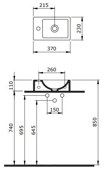 • Отверстия под смеситель: