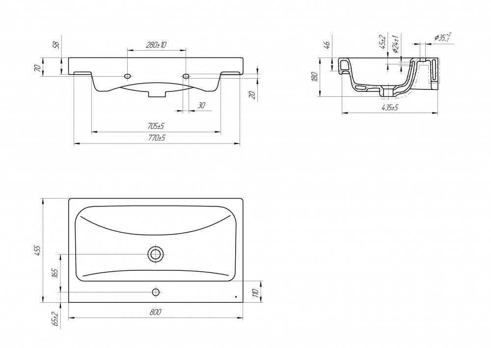 - Отверстия под смеситель:1