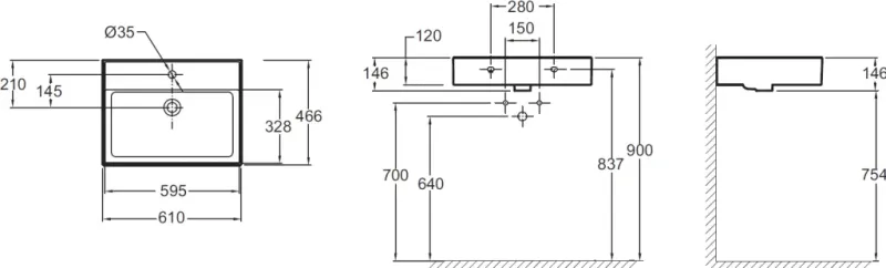 - Размеры: 61.0 x 46.6 x 14.6 см - Материал: Фаянс - Цвет: Белоснежный - Поверхность: Глянцевая