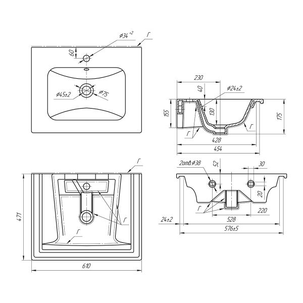 • Габариты (ШГВ): 608х470х130 мм