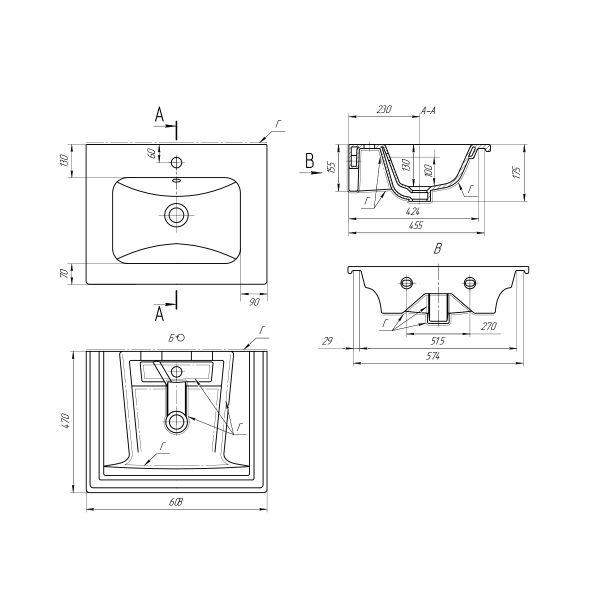 Раковина Lemark Эйфория 640344 белая 60 смОсновные особенности: