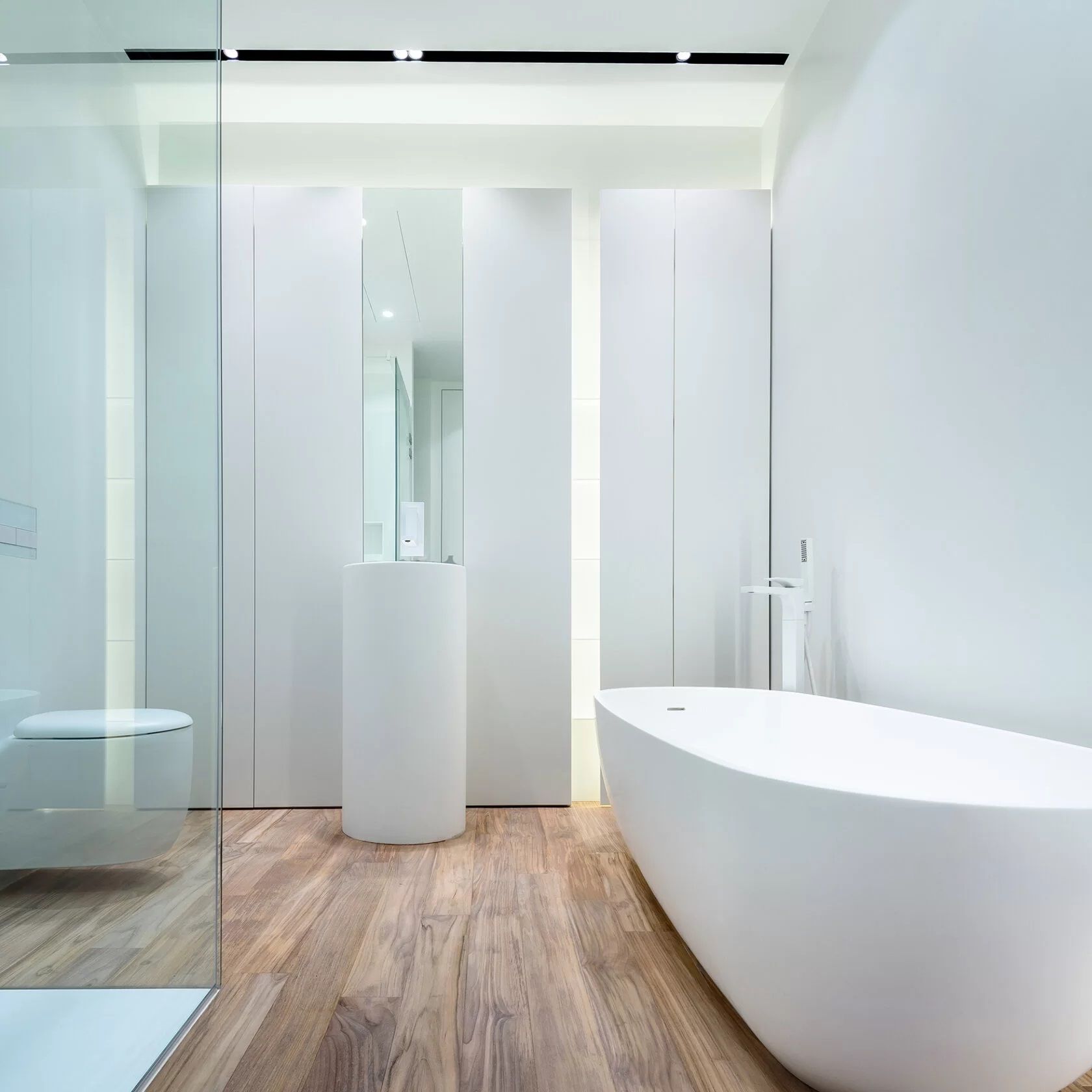 Раковина из искусственного камня для ванной комнаты. Похожие модели – Montebianco Pisa Cono и Pisa Rubinetto. Модель напольного размещения. Не требует сложных манипуляций при инсталляции, устанавливается обособленно от предметов мебели. Благодаря большой видимой площади белоснежно-матовой, бархатистой поверхности великолепно выглядит в интерьере, является самостоятельной композицией. Часто устанавливается в сан.узлах ресторанов и баров, а также частных домах с ванными комнатами большой площади. Высота раковины оптимальна как для высоких людей, так и небольшого роста, в том числе детей. Крепление смесителя либо к стене, либо напольное, на ножке, подчеркивает современный дизайн и технологичность конструкции. Материал не впитывает влагу, не порист, непроницаем для плесени, бактерий и грибков. Отличия от моделей Pisa Cono и Pisa Rubinetto – в размерах (две другие имеют чашу бОльшего размера), форме (Pisa Cono – конической формы) и месте размещения смесителя (в Pisa Rubinetto он устанавливается на поверхность раковины).