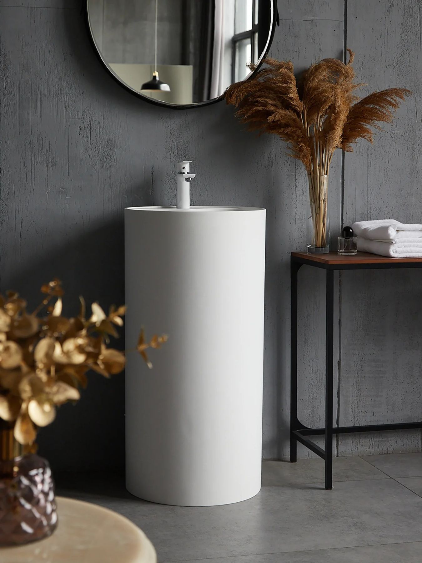 Раковина из искусственного камня для ванной комнаты. Похожие модели – Montebianco Pisa и Pisa Cono.