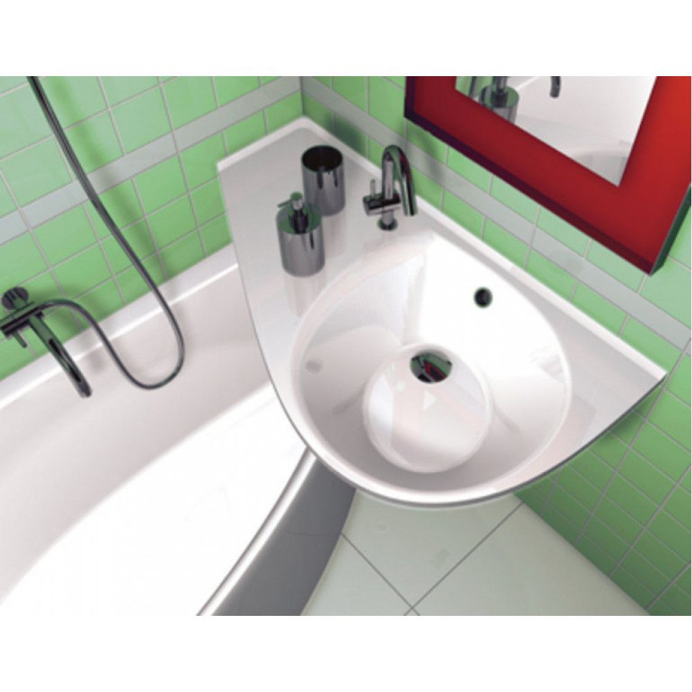 Умывальник с удобным моющим пространством и местом для вещей предназначен, прежде всего, для установки над ванной.