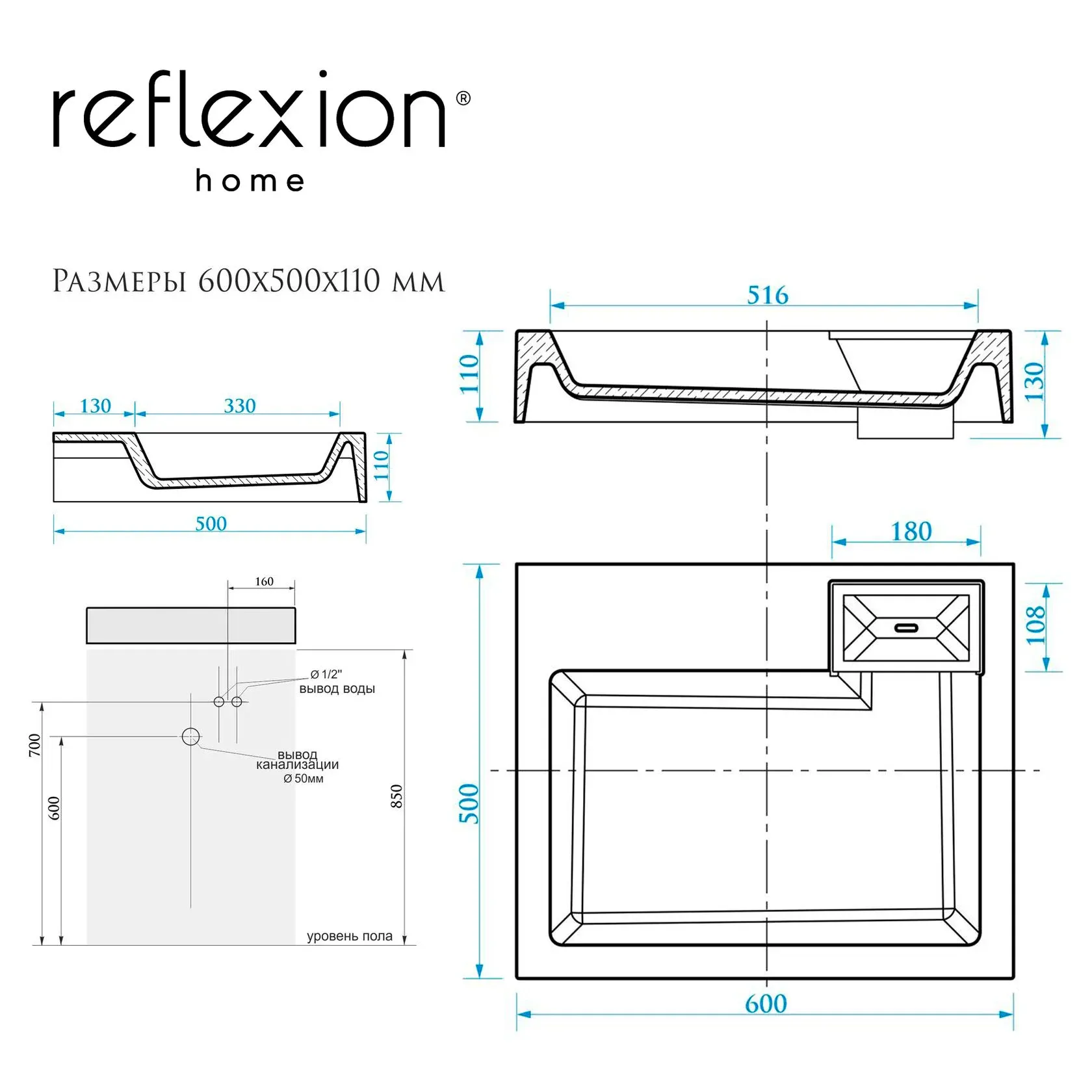 Раковина Reflexion Tetra RF6050TE белая 60x50 Подробнее