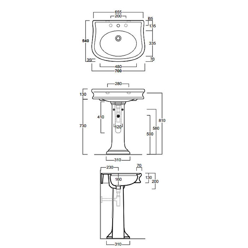 - Отверстия под смеситель:1
