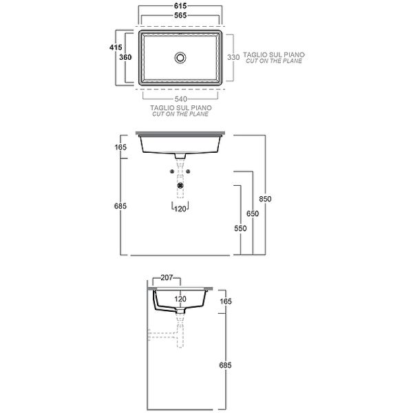 Габариты чаши (ШхВхГ): 565х120х360 мм.