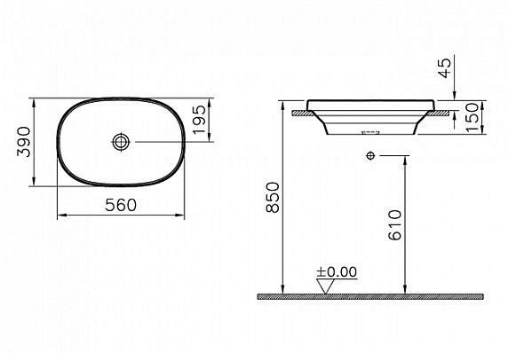Frame Овальная накладная раковина, 56 см, без отверстия под смеситель, без перелива, белая Подробнее
