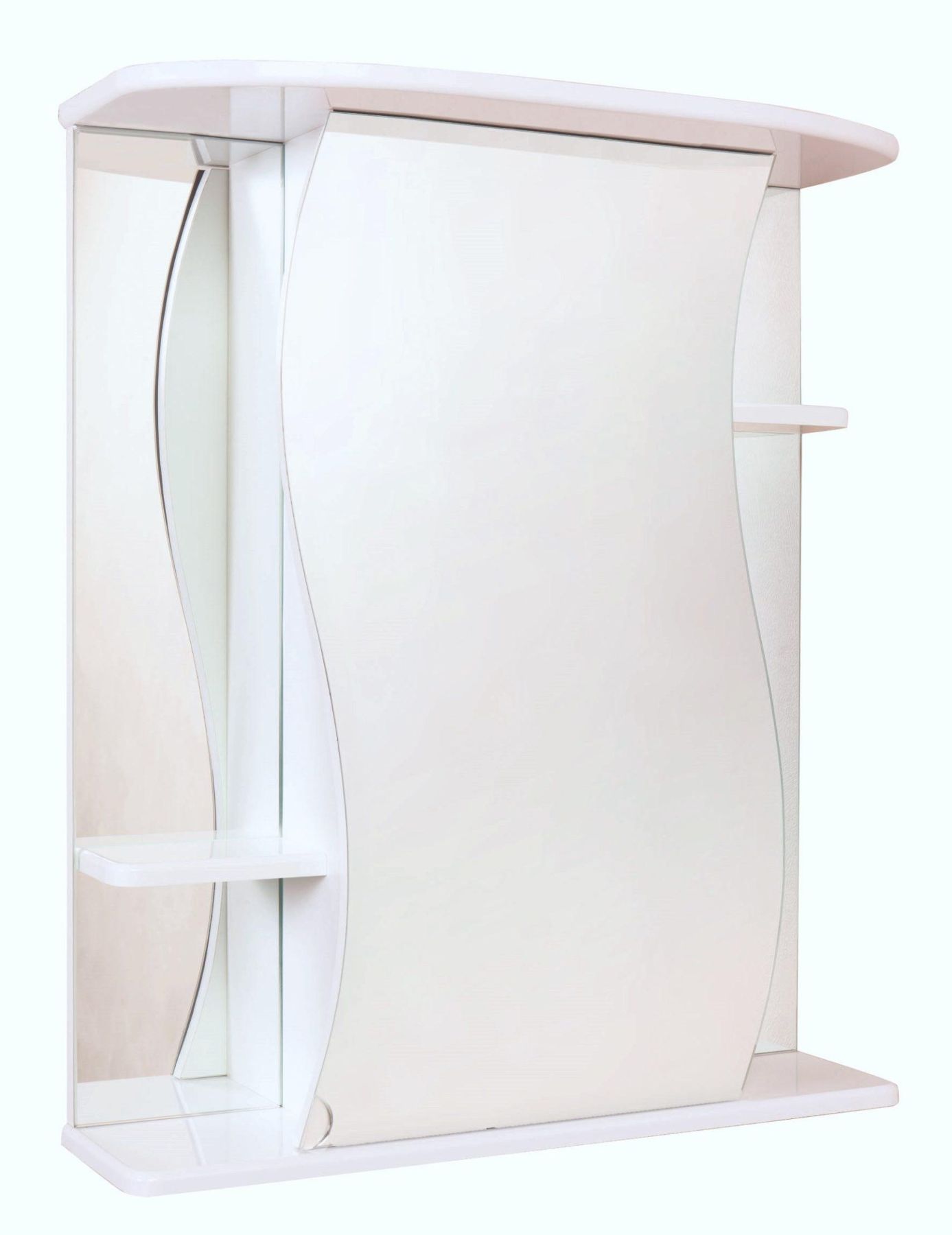 Навесной зеркальный шкаф ЛИЛИЯ 55 способен преобразить ванную комнату: эстетика изогнутой линии воплощается в мягкой волнообразной форме дверцы и исполняет роль основного выразительного элемента для интерьера помещения.