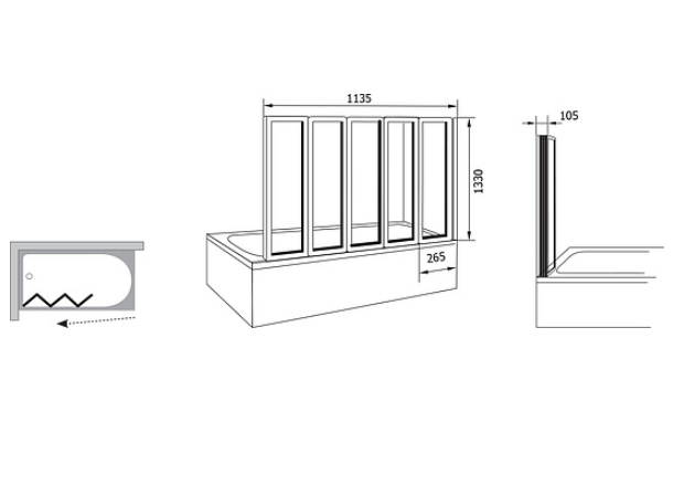 Шторка на ванну Ravak Supernova VS5 794E010041 Rain профиль белый