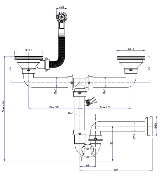 Сифон для мойки GranFest 12G14PB4-P2A черн