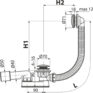 • Для слива воды из ванны в канализационный сток