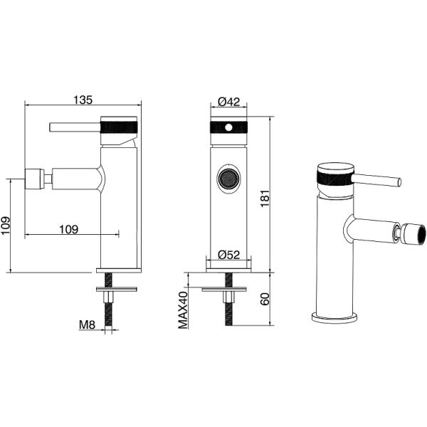 • Высота смесителя: