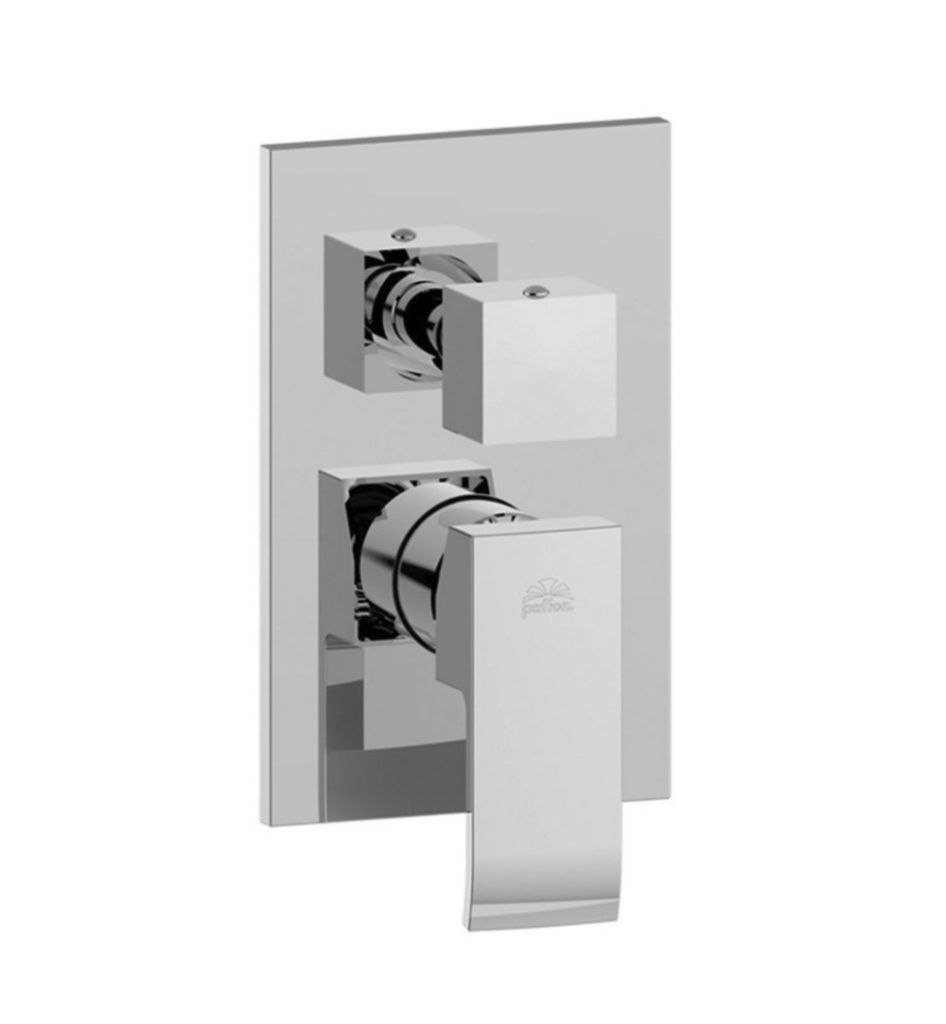 Смеситель встраиваемый для душа на 2 выхода с накладкой из металла 120х190мм.девиатор-картридж на 2положения+1 комбо положение, Хром