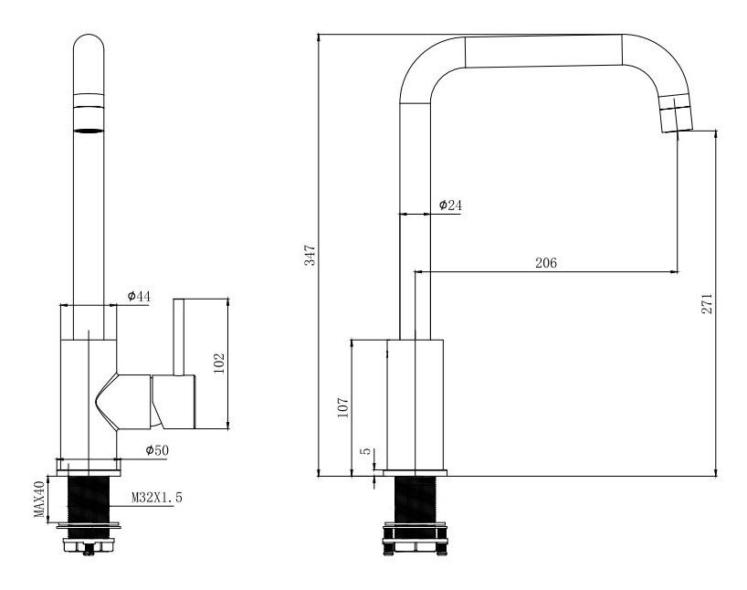 • Высота смесителя: