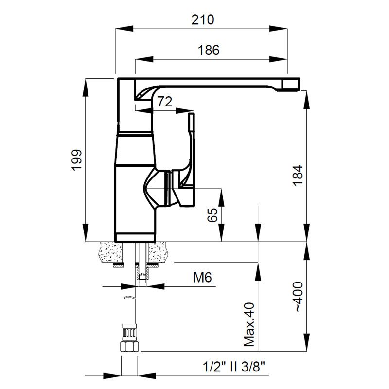 • Высота смесителя: