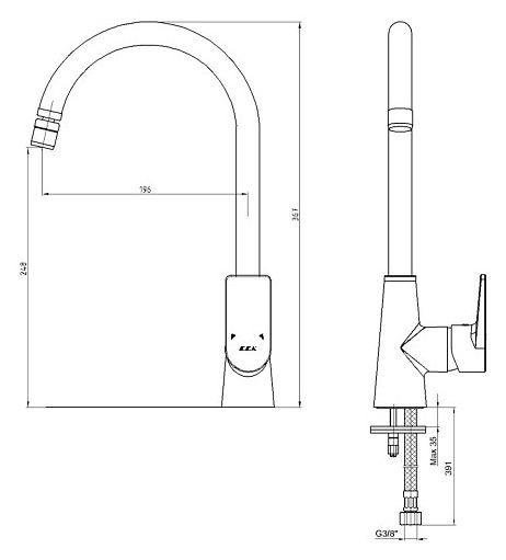 Смеситель E.C.A предназначен для подачи горячей и холодной воды в кухонных помещениях. Модель оснащена керамическим картриджем, обеспечивающим плавный ход рычага смесителя, контроль и точность при выборе напора и температуры воды. Дополнительные характеристики: