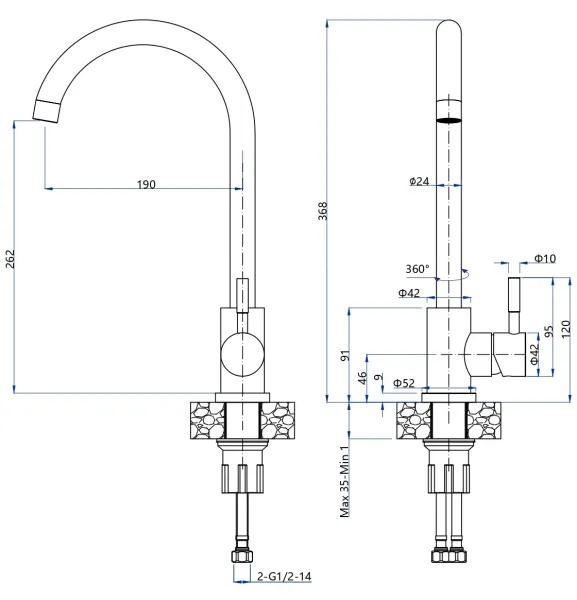 - Высота смесителя:26.2