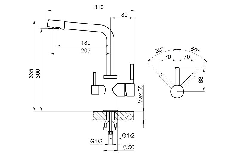 Смеситель для кухни Granula 3015, XРОМ/ШВАРЦ хром купить