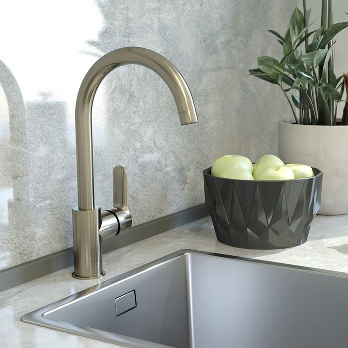 Смеситель для кухни, однозахватный, латунь, цвет покрытия - сатин, керамический картридж Softap 35 мм, силиконовый аэратор Neoperl. В комлекте: гибкая подводка, крепёж. Упаковка: коробка, микрогофрокартон, индивид. мешок.Смесители IDDIS разработаны с учетом специфики российских условий эксплуатации и благодаря продуманному дизайну, современным материалам и комплектующим — в том числе, прочному корпусу из первичной латуни и качественным водозапорным механизмам — прослужат долго.
