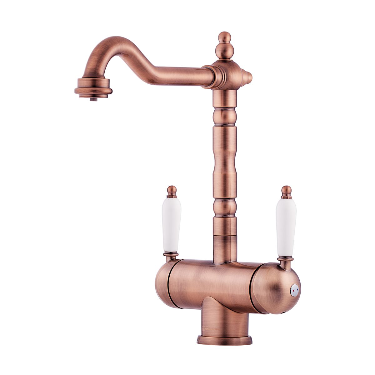 • Классический дизайн и удобство использования, благодаря высокому изливу; • Цвет: 015.Античная Медь; • Технология PURE LIFE: Подключение фильтра для очистки воды. Фильтрованная вода подается по отдельной трубке и не смешивается с водопроводной водой; • Высококачественная латунь сохранит воду чистой и здоровой; • Аэратор произведен из пластика, благодаря чему на нем никогда не появится известкового налета и ржавчины; • Коробка внутри проложена поролоном, который обеспечит сохранность изделия при транспортировке; • Полный набор креплений, соединительных шлангов, подробная инструкция и гарантийный талон в комплекте;