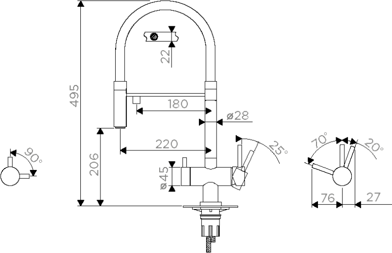 - Длина излива, см:22
