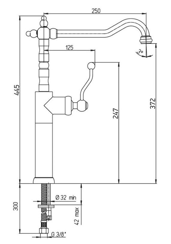 Однорычажный высокий смеситель в винтажном стиле украсит кухню, его поворотный длинный излив позволят менять направление потока воды, а увеличенная высота - использовать глубокую посуду. Изысканная форма позволит сделать смеситель самостоятельным арт-объектом на кухне. Антикварные изгибы DUOMO будут органично смотреться в стилях классика, винтаж или по-новому раскроют интерьер в стиле фьюжн.