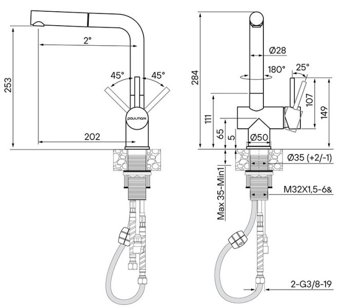 - Высота смесителя:28.5