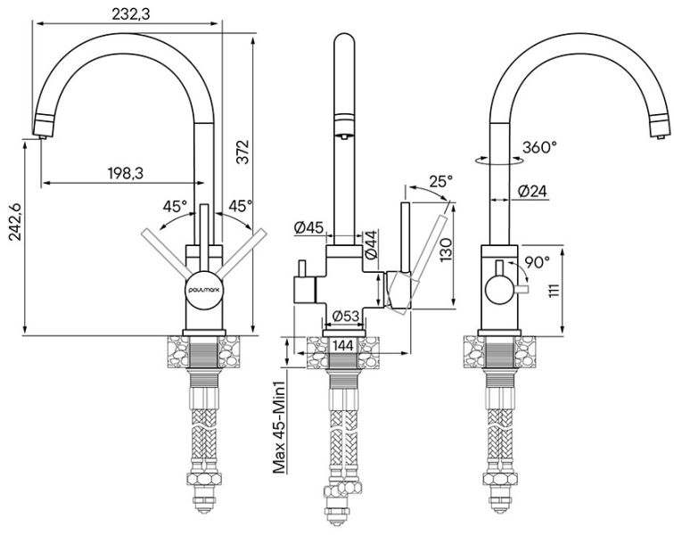 - Гибкий излив:нет