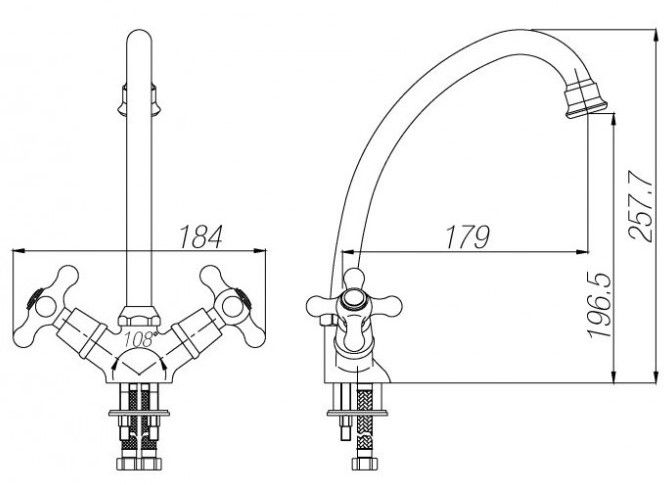 • Долговечные керамические кран-буксы с углом поворота 180°