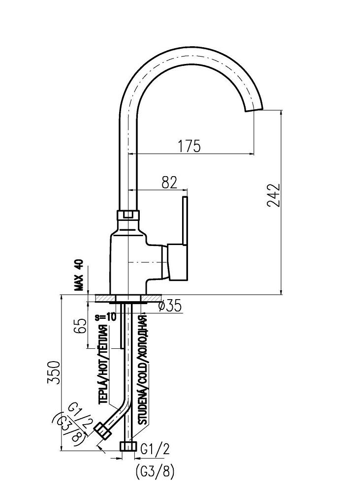 • Высота смесителя: