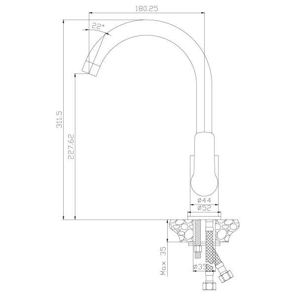 - Высота смесителя:31.2